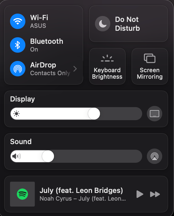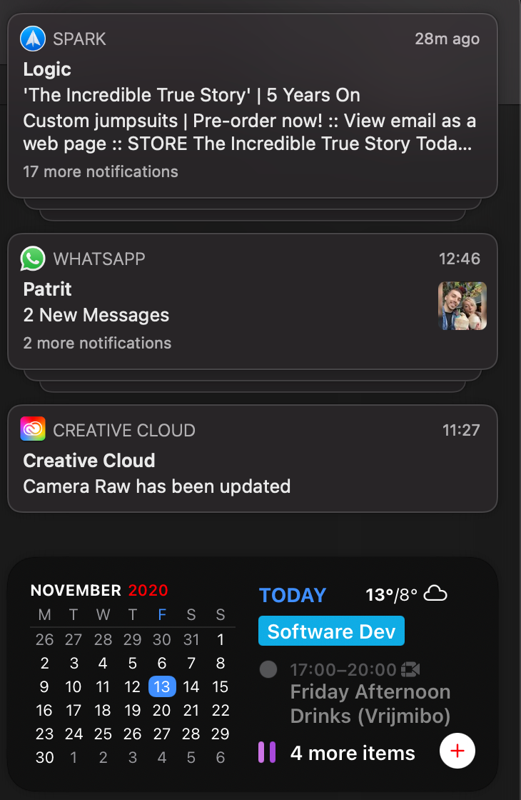Control Center is also available now in Big Sur. It should be nice for the people that use a mouse or trackpad often. But I can change all these settings within the keyboard Touch Bar. Which is also faster, so I don’t see the benefit that much here.