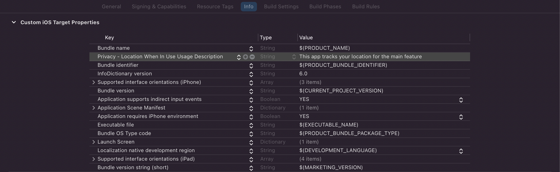 First, we need to build the functionality to request the user to allow us to track their location. There are two types that you can use (or both).
