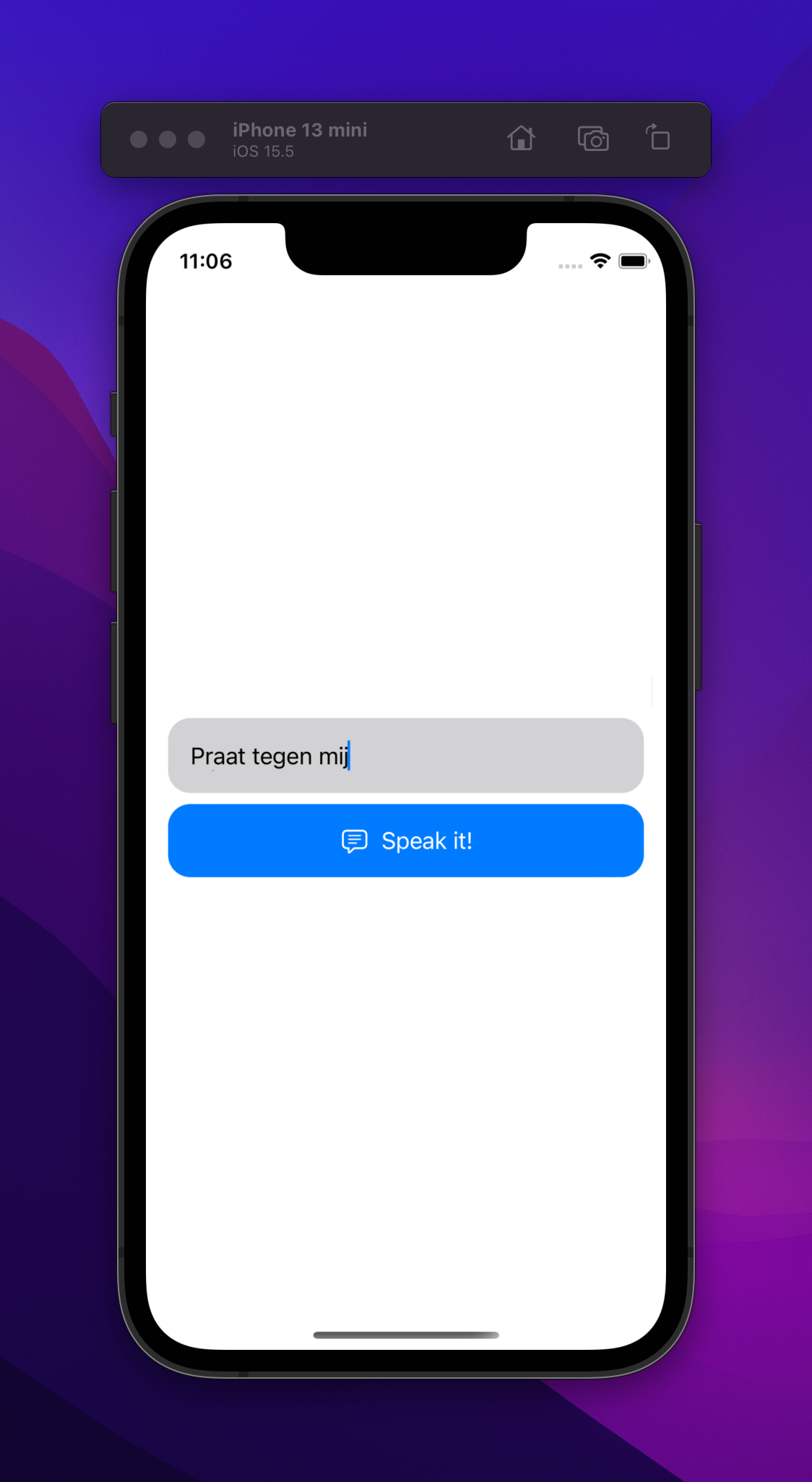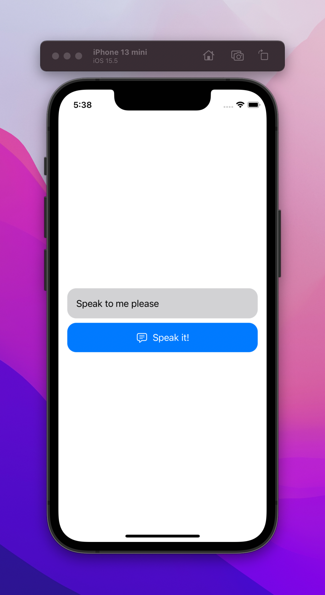 Now let’s run the app, and you can type anything in the textfield, press the Speak button, and the app will speak it you.