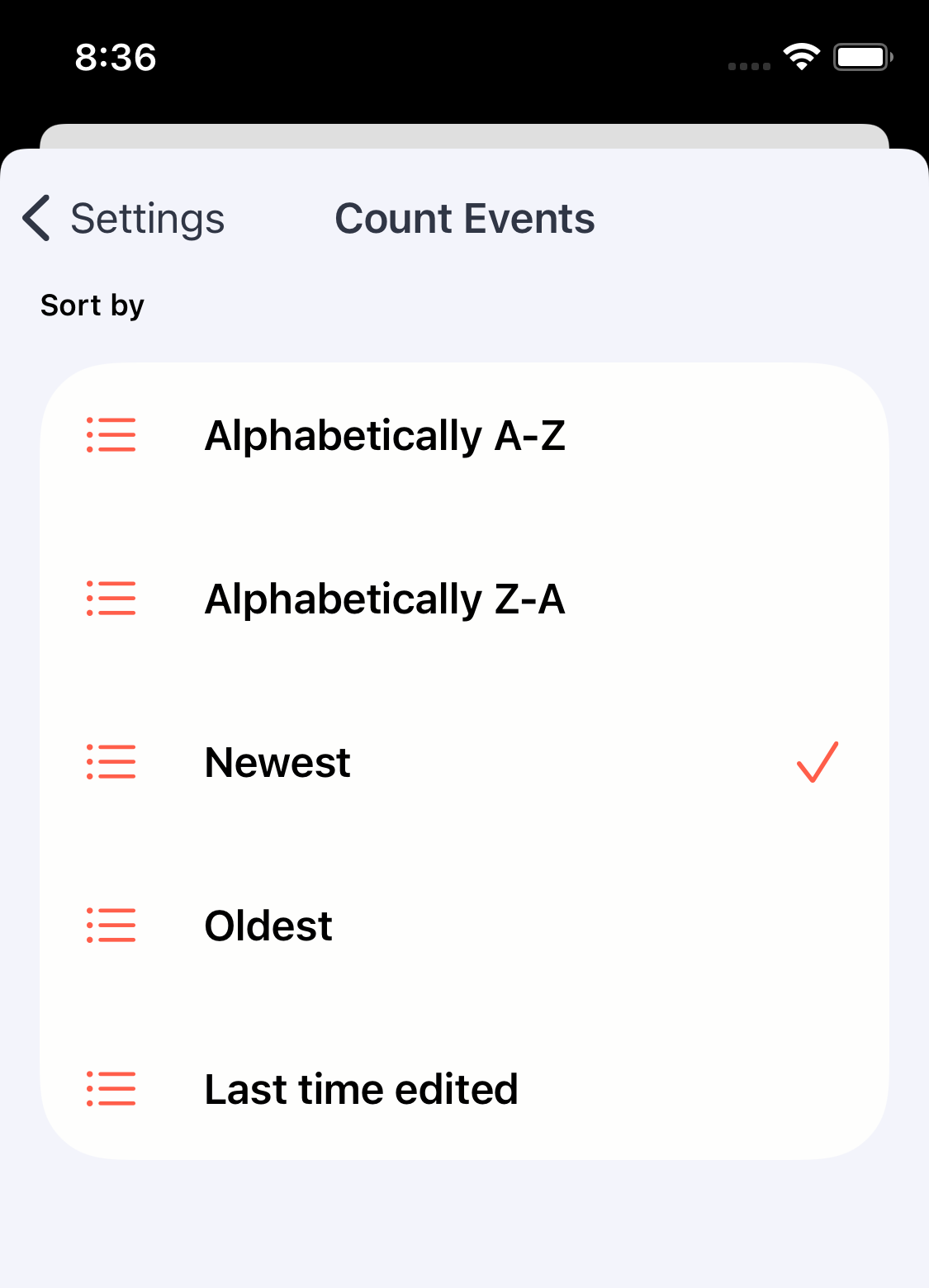 Also, based on a new feedback card I’ve received from a user, I’m working on the option to have a custom order of your count events/tasks. See the following screenshot for a preview!